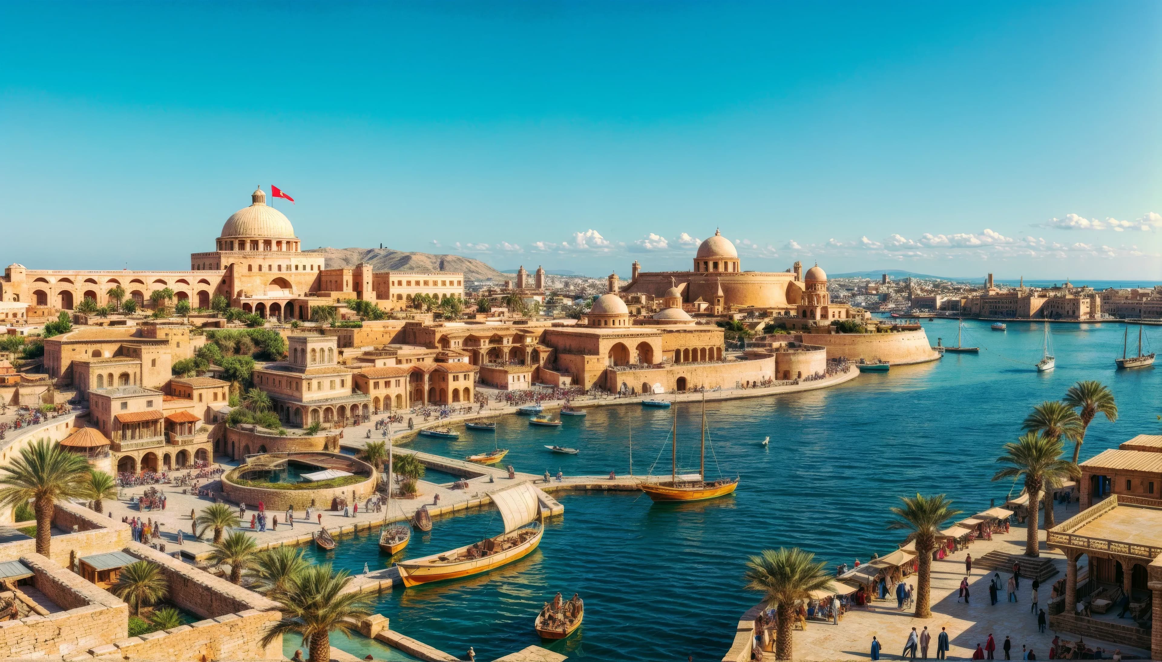The city of Carthage was renowned for its advanced architecture and structured urban planning. The city was separated into distinct quarters for commerce, religion, administration, and housing. At its center lay the Byrsa Hill, which housed the city's acropolis and was surrounded by fortified walls. Carthage was also known for its grand harbors, the military harbor was a circular design with individual docks for each ship, while the rectangular merchant harbor was used for trade. These harbors showcased the city's naval power and economic prosperity.