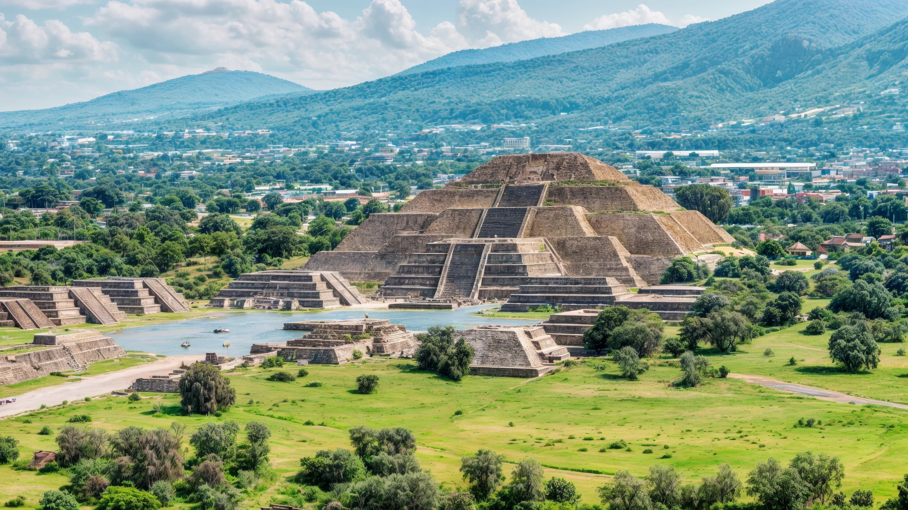 Teotihuacan, located in the Basin of Central Mexico, was one of the largest urban centers in the ancient world, believed to have been established around 100 BC. It grew into a vibrant metropolis with a diverse population drawn from across Mesoamerica. The city flourished from about the first to the seventh century AD, during which time it became a powerful and influential cultural, economic, and political center, exerting its influence across much of the Mesoamerican region.