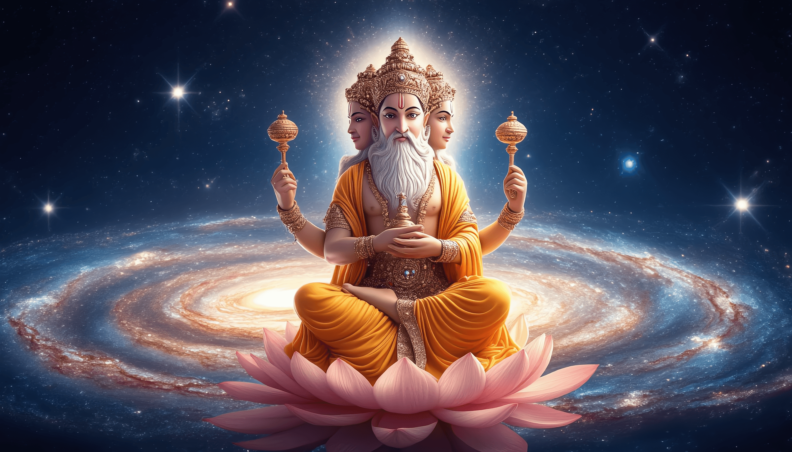 The name "Brahma" comes from the Sanskrit word "brih" which means "to grow" or "to expand." This name connects to "Brahman," the ultimate reality or cosmic principle in Hinduism. Hence, Brahma is linked to the ideas of creation, expansion, and the universe's beginning.